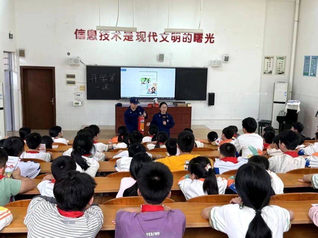 阳春市消防救援局正在辖区升平小学开展消防平安“开学第一课”勾当。